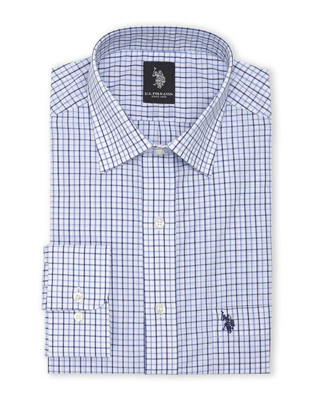 חולצה מכופתרת יו אס פולו משובץ כחול / תכלת - Classic fit