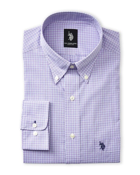 חולצה מכופתרת יו אס פולו משובץ סגול / לבן - Classic fit