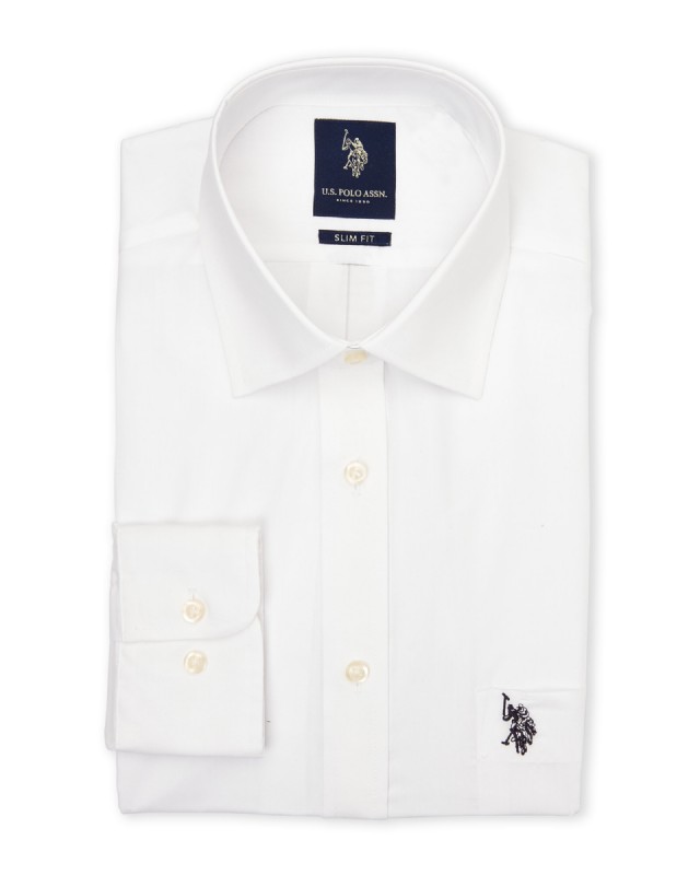 חולצה מכופתרת יו אס פולו לבן חלק - Slim fit
