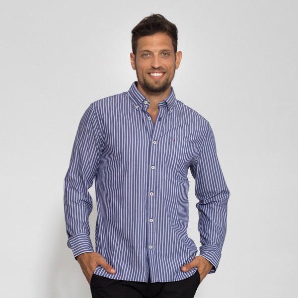 חולצה מכופתרת טומי הילפיגר פסים כחול/ לבן - Custom fit