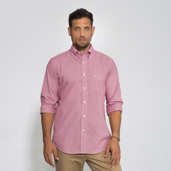 חולצה מכופתרת נאוטיקה משובץ צפוף לבן/אדום -Slim fit